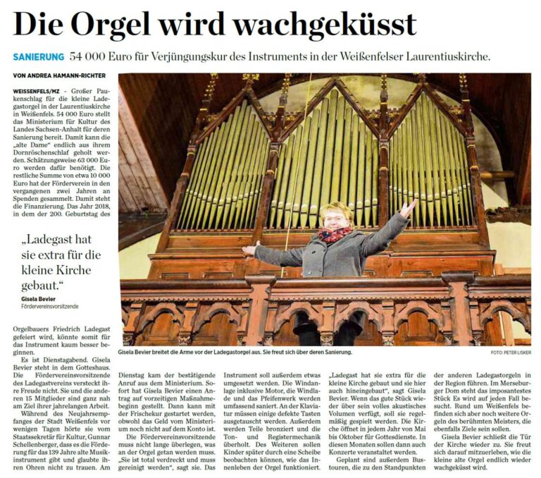 54.000 Euro für Verjüngungskur des Instruments in der Weißenfelser Laurentiuskirche. „Ladegast hat sie extra für die kleine Kirche gebaut.“